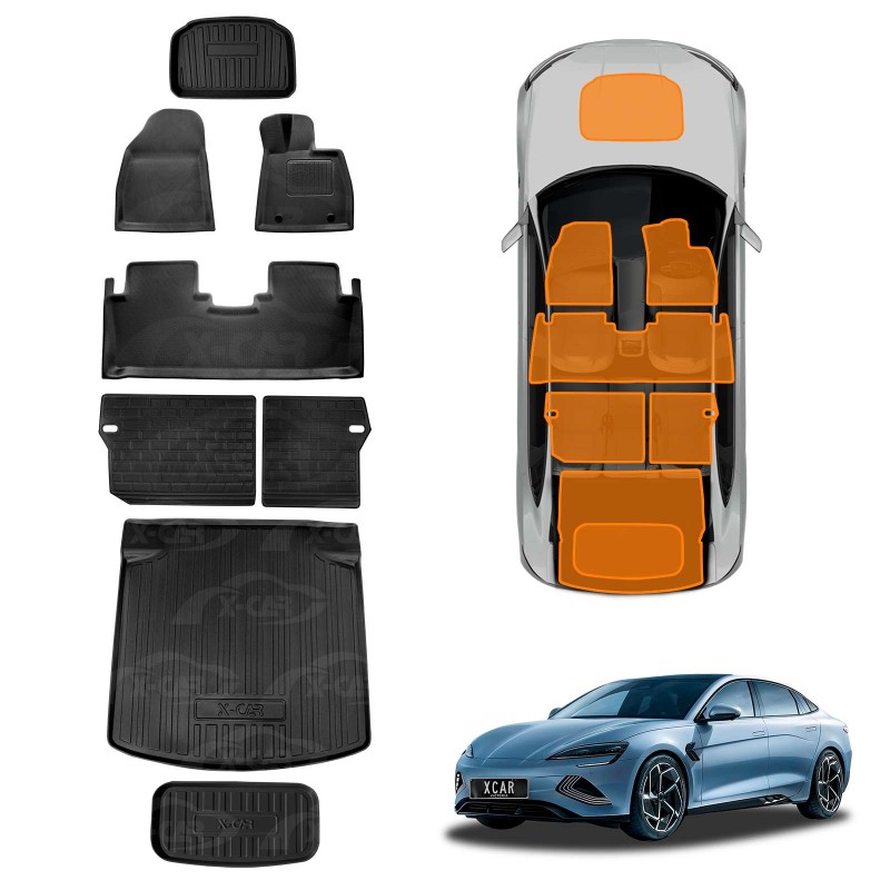 - Custom Design, All-Weather Interior Liner for BYD Seal 2023-Current, Front/Rear Trunk, Rear Well and Back Seat Kick Mats.