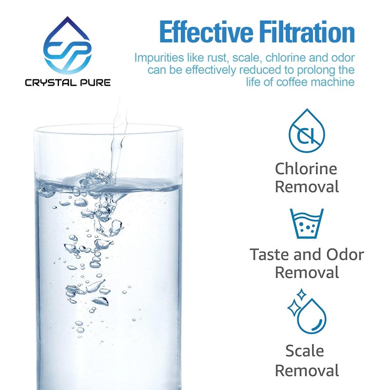 - Superior quality: All water filters are made out of resin in order to protect your coffee machine from the damages posed by hard water buildup also eliminate the smell and taste of chlorine, sulphur and iron as well as some minerals, soften the hard water with progress called ion exchange.