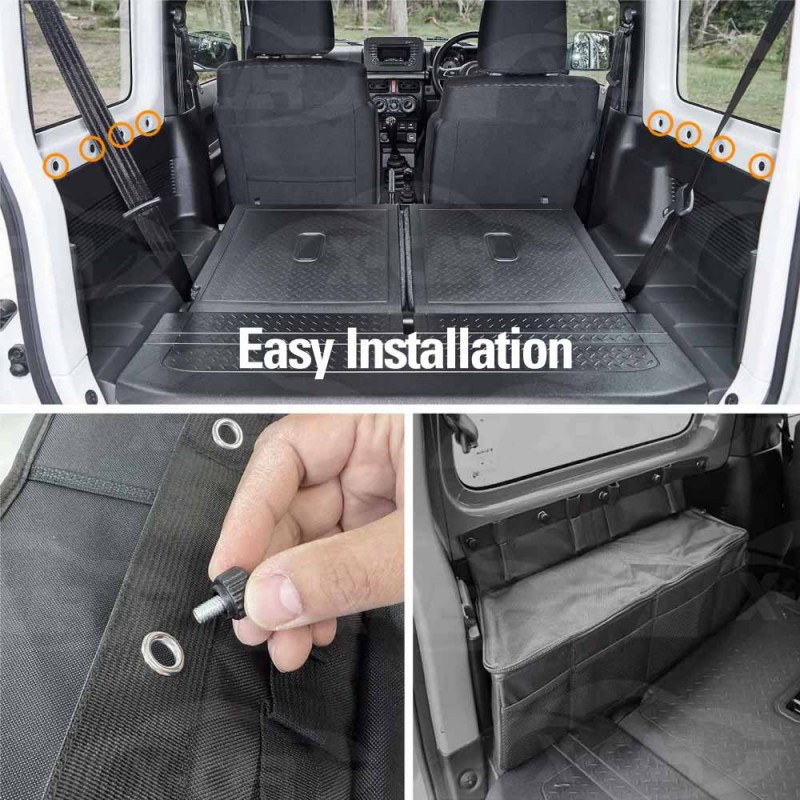 - [Function] – The original Jimny boot side area has limited storage space, and loose items may shift during driving. This trunk side storage bag helps increase usable storage space, keeps items organised, reduces movement while driving, and supports a cleaner and more organised boot area.