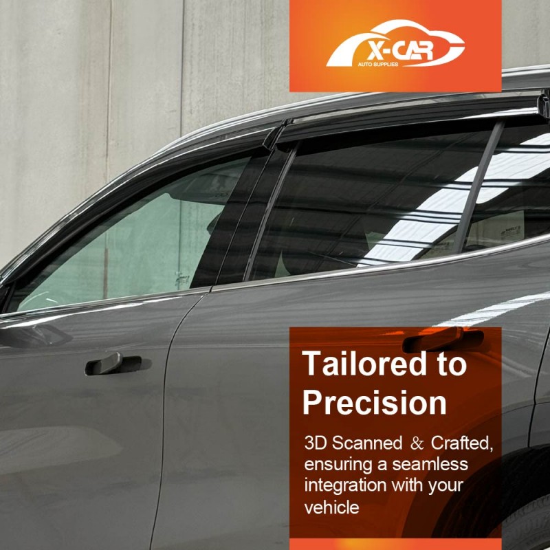 - Maximum Fresh Air Enjoyment. Let the fresh air in and keep the rain out! X-CAR side window visor spans the entire window channel, allowing you to open your windows and enjoy fresh air even when raining. It also reduces wind noise and minimizes turbulence with open windows.