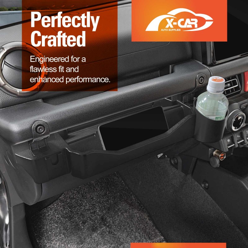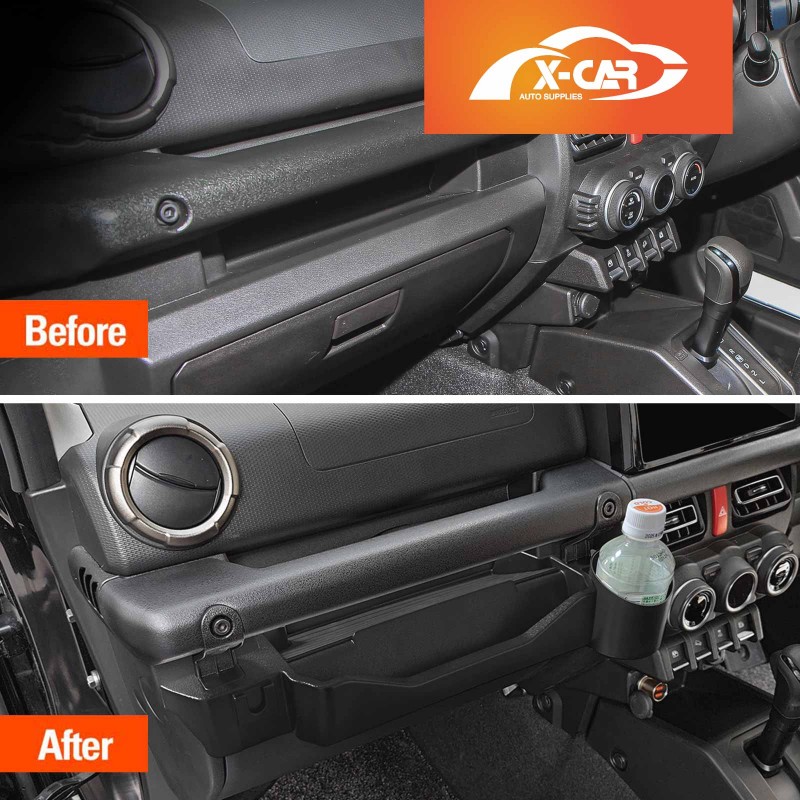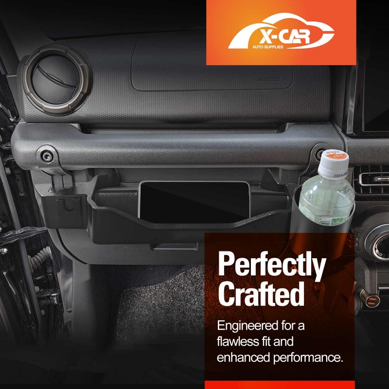 - Custom-Designed: This grab tray passenger storage box with cup holder is designed for Suzuki Jimny 3-Door & 5-Door 2018-Current, fitting securely on the front passenger grab handle above the glove box. It effectively protects the car’s surface and provides additional storage space.