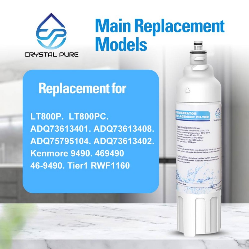 - Compatible Water Filter Models Include: GF-5D712BSL, GF-5D906SL, GF-5L712PL, GF-AD701BSL, LT800P, LT-800P, ADQ73613401, ADQ73613402, and other compatible LG refrigerator models.