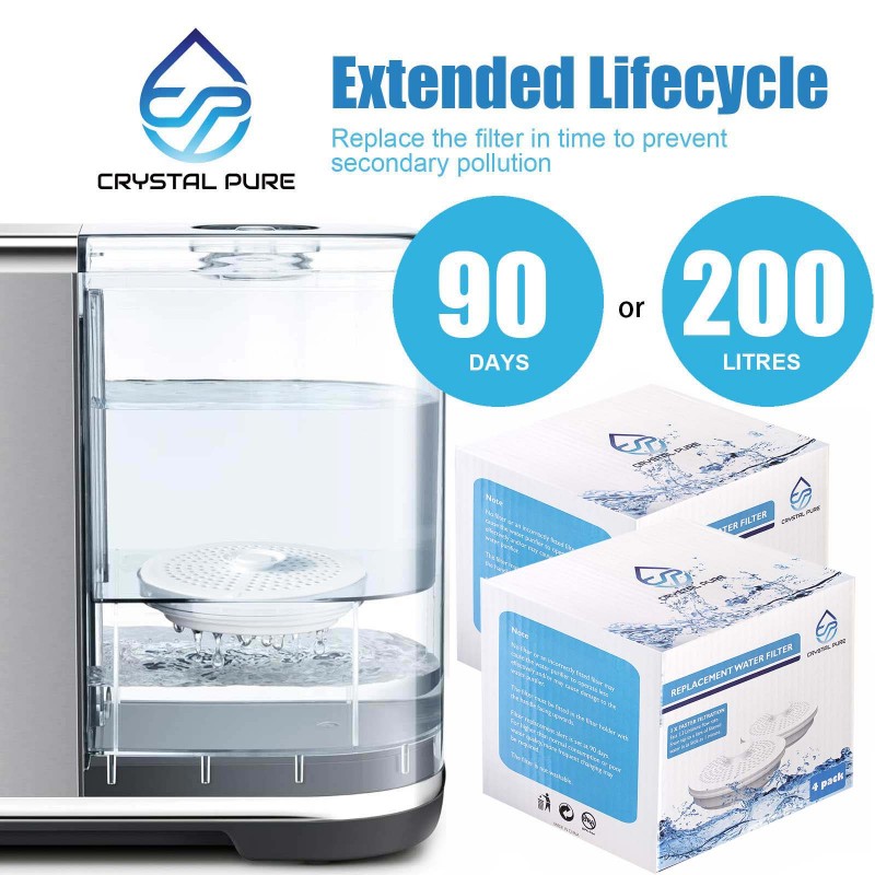 - [Installation guide]: Remove the water tank, discard old filter and remaining water. Soak the new filter in cold water for 10 minutes, gently shake to release air bubbles. Insert firmly, flush twice with 2 litres of water, and it's ready to use. Black particles during first use are harmless carbon residues.