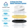 - [Efficiency filtration]: Crystal Pure premium replacement filter cartridge features an advanced 4-stage filtration system, including a pre-sediment layer, ion exchange resin, activated carbon, and micro-filtering membrane. It effectively reduces chlorine, heavy metals, pesticides, limescale, microplastics, and suspended particles to deliver fresher, cleaner, healthier water.