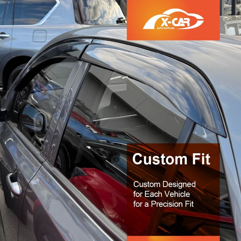 - Maximum Fresh Air Enjoyment. Let the fresh air in and keep the rain out! X-CAR side window visor spans the entire window channel, allowing you to open your windows and enjoy fresh air even when raining. It also reduces wind noise and minimizes turbulence with open windows.