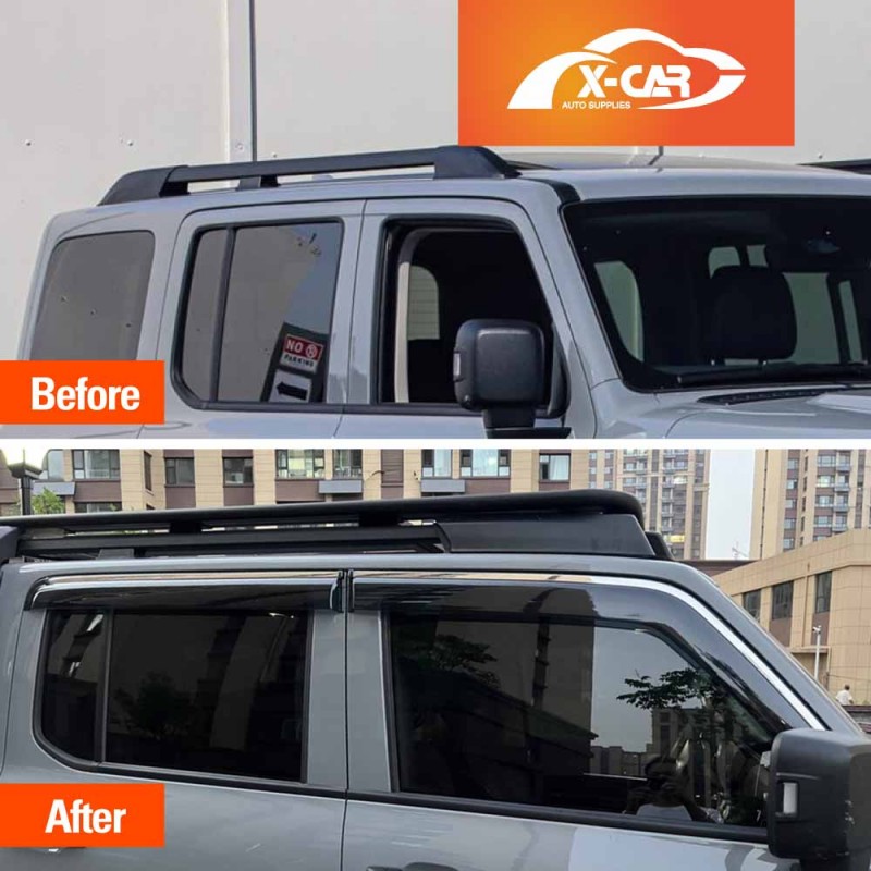 - Maximum Fresh Air Enjoyment. Let the fresh air in and keep the rain out! X-CAR side window visor spans the entire window channel, allowing you to open your windows and enjoy fresh air even when raining. It also reduces wind noise and minimizes turbulence with open windows.